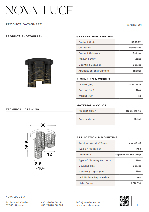 NOVA LUCE ZANE plafoniera - 9555811 - Black Metal Outside Gold Metal Inside