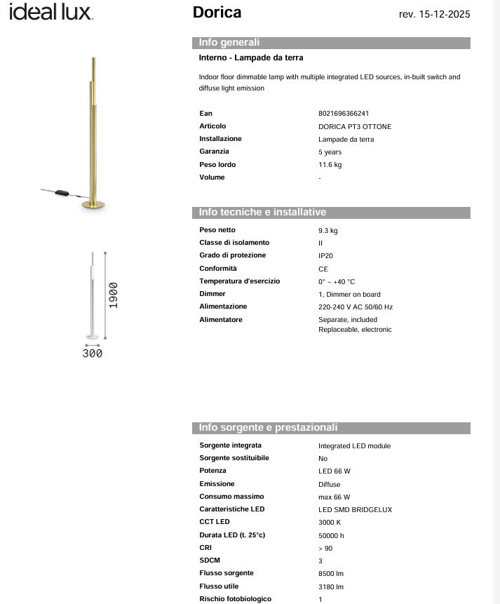 Dimensiuni: D 300 x H 1900 mm