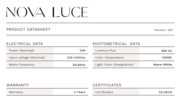 Bec inclus: LED 12 Watt 220 Volt 960Lm 3000K IP20