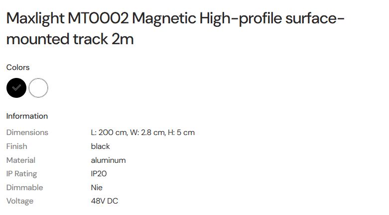 MAX LIGHT Maxlight MT0002 Magnetic High-profile surface-mounted track 2m