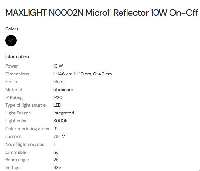 MAX LIGHT MAXLIGHT N0002N Reflector 10W On-Off Colors 3000K - MICRO11