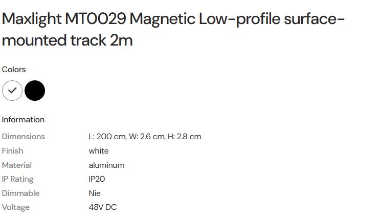 MAX LIGHT Maxlight MT0029 Magnetic Low-profile surface-mounted track 2m
