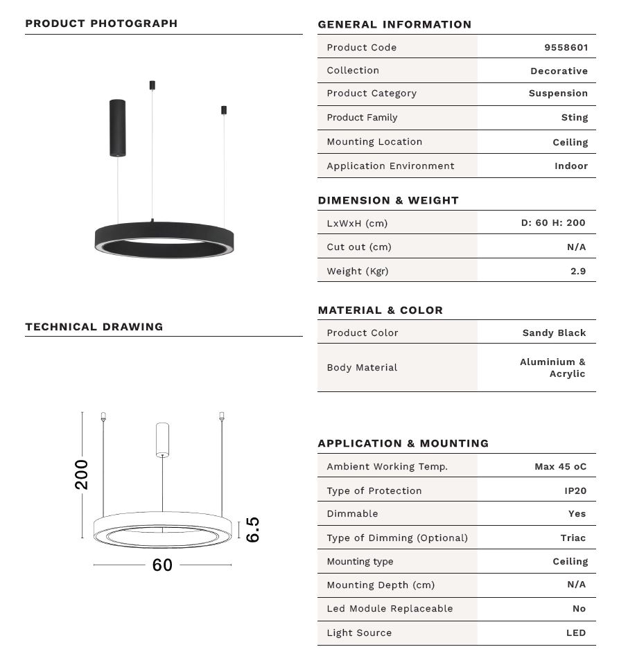 Bec inclus: LED 40 Watt 230 Volt 2152Lm 3000K IP20