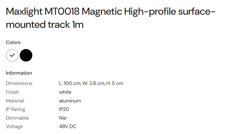 MAX LIGHT Maxlight MT0018 Magnetic High-profile surface-mounted track 1m