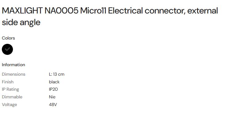 MAX LIGHT MAXLIGHT NA0005 Micro11 Electrical connector, external side angle NT0005, NT0010, NT0015 -MICRO11 black