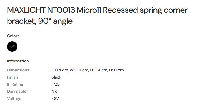MAX LIGHT MAXLIGHT NT0013 Micro11 Recessed spring corner bracket, 90° angle NT0011,NT0012- MICRO11 black
