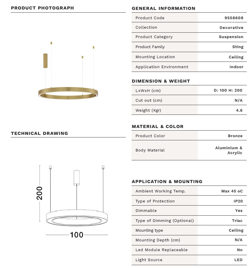 NOVA LUCE Sting SP100 Brass Gold - suspensie moderna LED 3000K