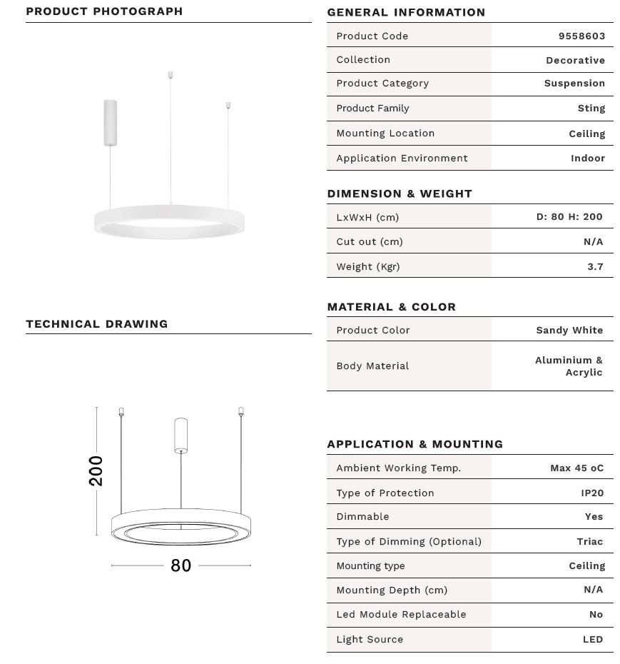 NOVA LUCE Sting SP80 Sandy White Aluminium & Acrylic - suspensie moderna LED 3000K