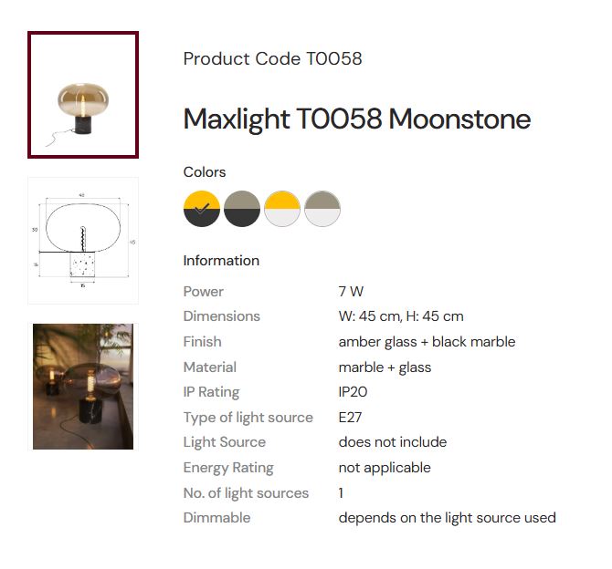 MAX LIGHT MAXLIGHT T0058 Veioza MOONSTONE AMBER GLASS + BLACK MARBLE