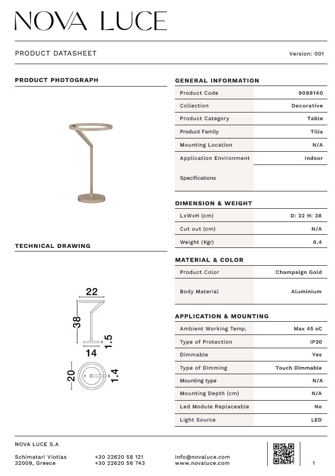NOVA LUCE TILIA veioza - Touch Dimmable Moca Coffee Aluminium